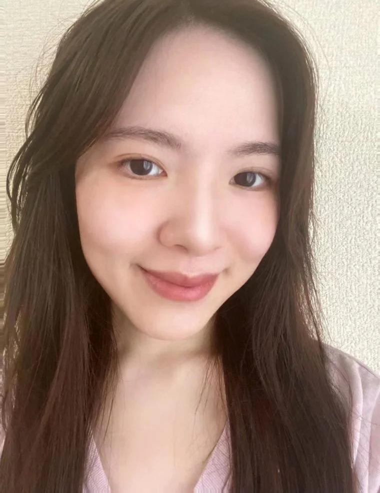 色ムラをふんわりカバーして、くすみのない肌に整えていますね。