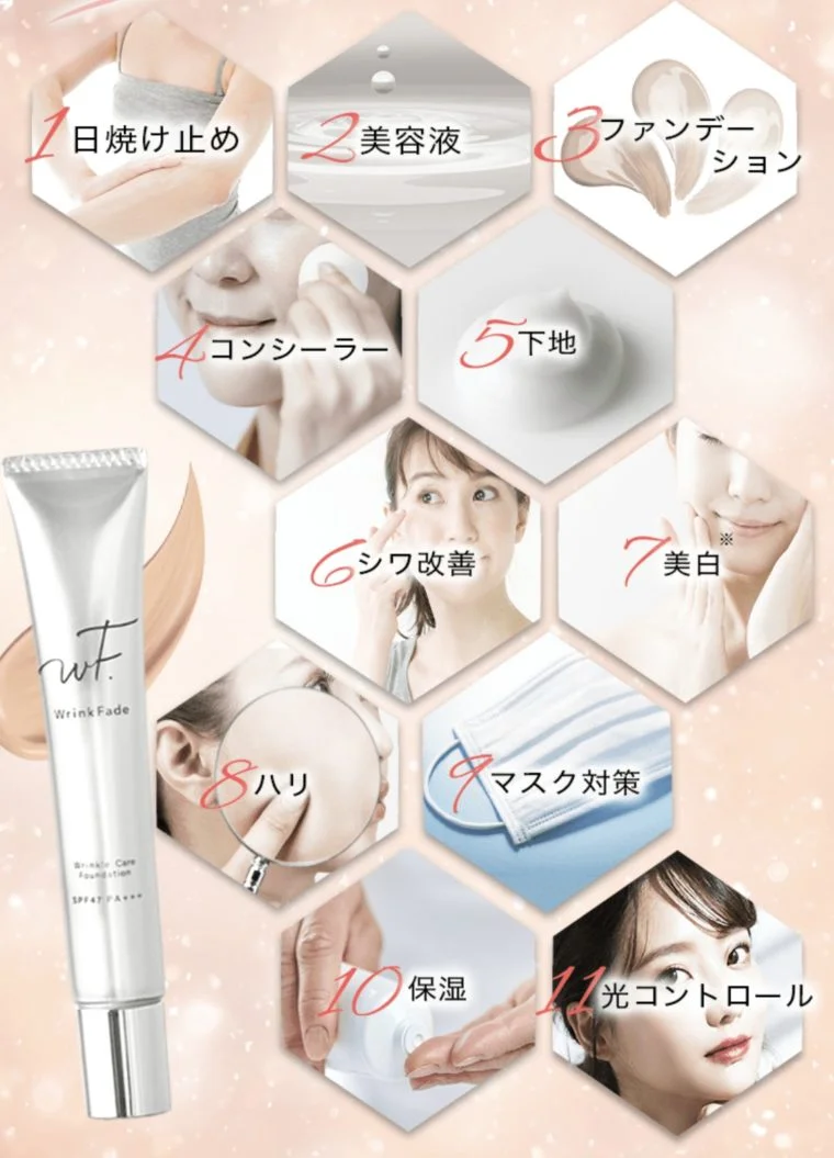 と口コミで話題のWrinkFade(リンクフェード)は、使うたびに素肌が美しくなるという次世代ファンデ♪